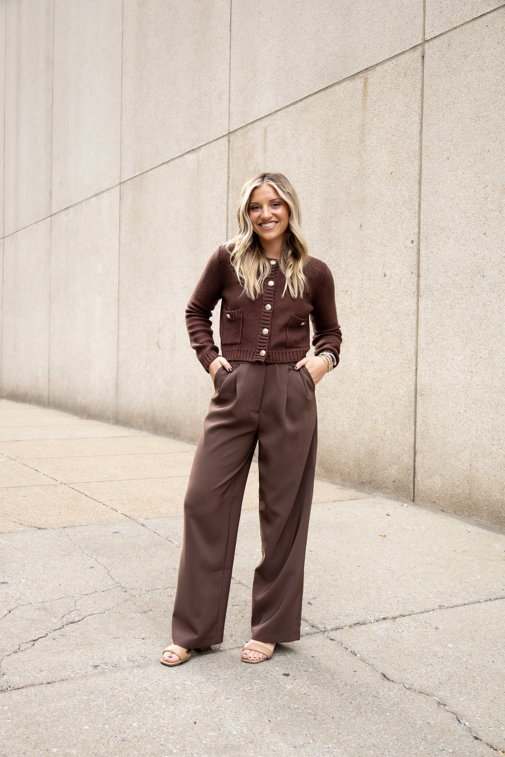 Wide Leg Dress Pants - Brown